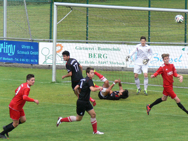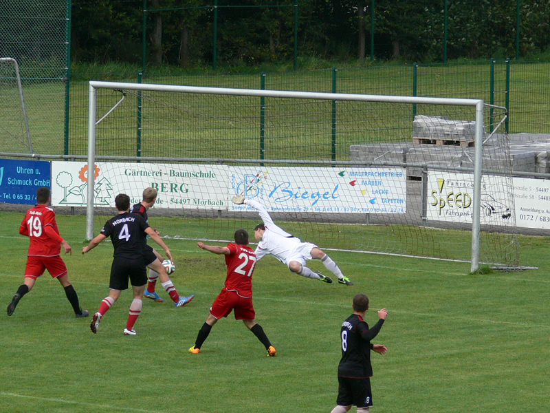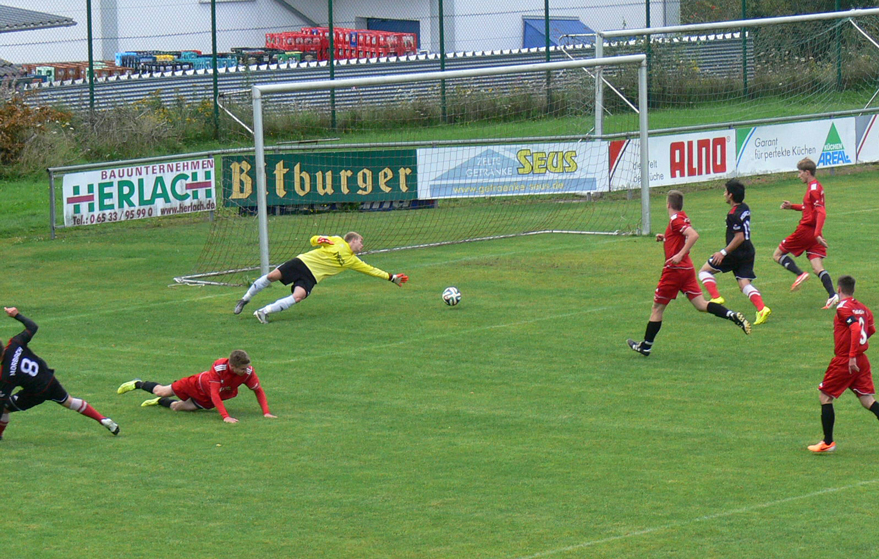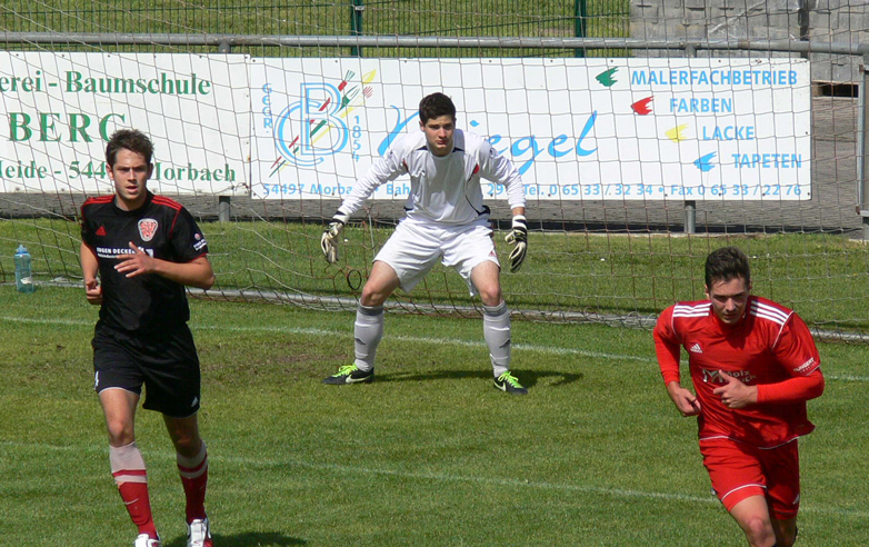 im Morbacher Defensiv-Block das 1:2 als er die Kugel ins leere Tor schieben