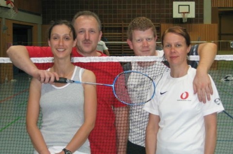 | Mit gestärkter Brust fuhr man am nächsten Morgen nach Mayen. Wieder zog der SV Morbach mit den zwei gleichen Doppel los, um auch hier wieder einen Platz an der Sonne zu erkämpfen. Die Herren hatten in der sehr ausgeglichenen Konkurrenz etwas Pech und man verpasste das Halbfinale nur um zwei Punkte. Speedy und Gerd aber nahmen es leicht und erspielten sich in der Platzierungsrunde einen hervorragenden fünften Platz. Bei den Damen sah es anders aus. Durch die geringere Anzahl an teilnehmenden Damendoppel wurde hier in Gruppenspielen a zwei Gewinnsätzen bis 21 der Sieger ermittelt. Gleich im ersten Spiel traf man auf alte Bekannte aus Kehrig und man staunte nicht schlecht, als man feststellte, dass dort ein Morbacher Mädel spielt. Melanie Uhrmacher, inzwischen wohnhaft in Kehrig, konnte allerdings mit Ihrer Partnerin nicht verhindern, dass Yvonne und Rosi sich den Sieg holten. Das zweite Spiel wurde souverän gewonnen und im dritten Spiel traf man auf die Favoriten vom BC Mayen. Nach einem packenden und hart umkämpften Dreisatzmatch hießen die Siegerinnen schließlich Yvonne und Rosi. Das vierte Spiel wurde klar gewonnen und damit der vierte Turniersieg an diesem Wochenende eingefahren. |