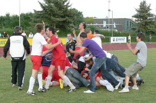 diesem Sieg brachen alle Dämme, bei Mannschaft und Zuschauern |