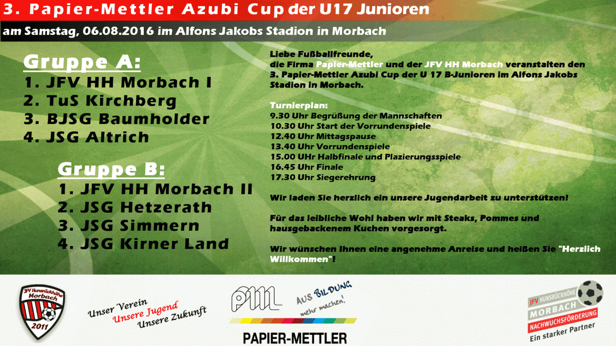 3. Papier Mettler Azubi Cup der U 17 Junioren Samstag, 06.08.2016, Alfons-Jakobs-Stadion Download: Turnierplan