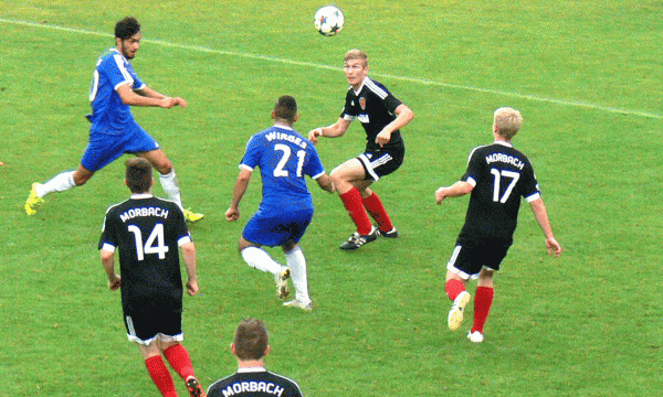 Auch nach dem Seitenwechsel blieb Morbach die spielbestimmende Mannschaft und hatte bei einem 25-Meter-Kracher von Andre Spengler (47.) die nächste Möglichkeit. Die Blauhemden aus dem Westerwald hatten in der 59. Minute ihre größte Chance als Galip Sen zum Schuss kam und Goalie Yannick Görgen per Fußabwehr klären konnte.