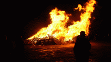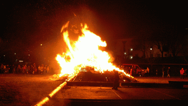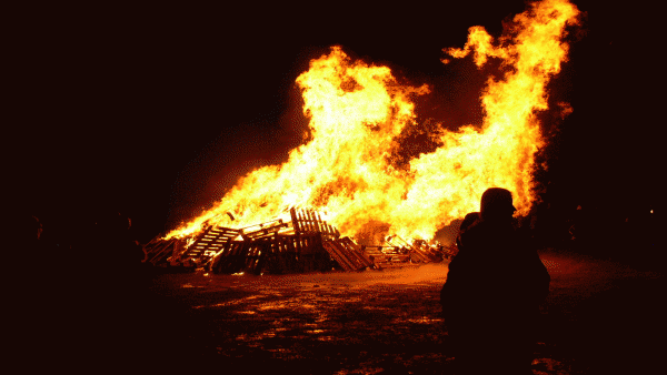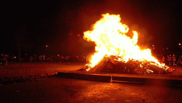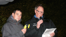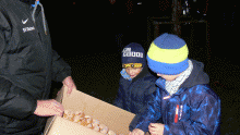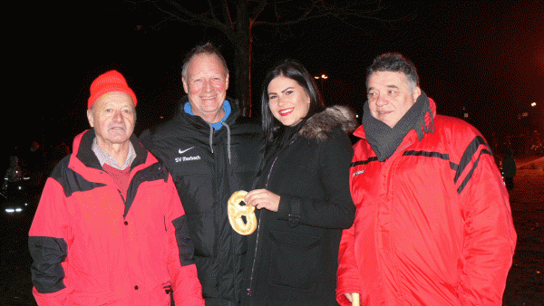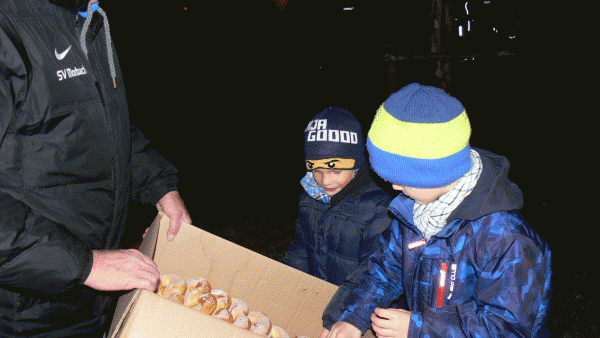Am stimmungsvollen Martinsfeuer wurde den Umzugsteilnehmern im Alfons-Jakobs-Stadion eine Bewirtung mit leckerem Glühwein und Würsten geboten.