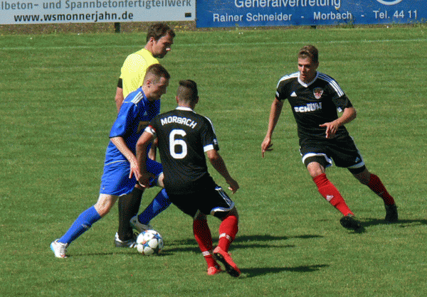 Ausgangspunkt des Morbacher Führungstreffers in der 55. Minute war der eingewechselte Dennis Schröder der mit einem Zuckerpass Florian Knöppel freispielte. Flo umspielte den herausstürzenden Goalie und netzte eiskalt zum umjubelten 1:0 ein.