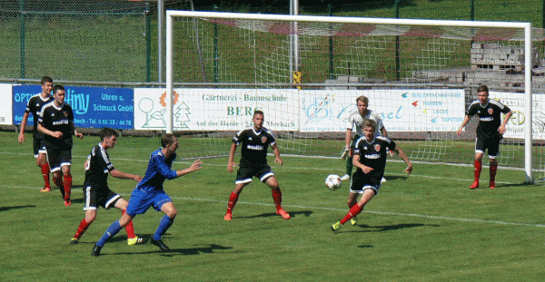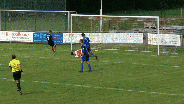 Die größte Möglichkeit zum Anschlußtreffer hatten die Blauhemden in der 79. Minute als Yannick Bach den Ball an die Latte bugsierte.