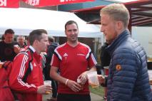 Bürgermeister Arianit Besiri mit Spielführer Sebastian Schell