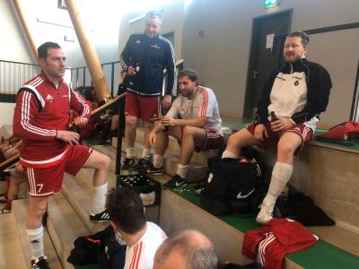 Mit nur neun Spielern angereist, erhielten wir im ersten Durchgang Verstärkung durch Peter Ertz, im Laufe der 1. Halbzeit sorgte Gastspieler Ingo Erz für den 11. Mann.